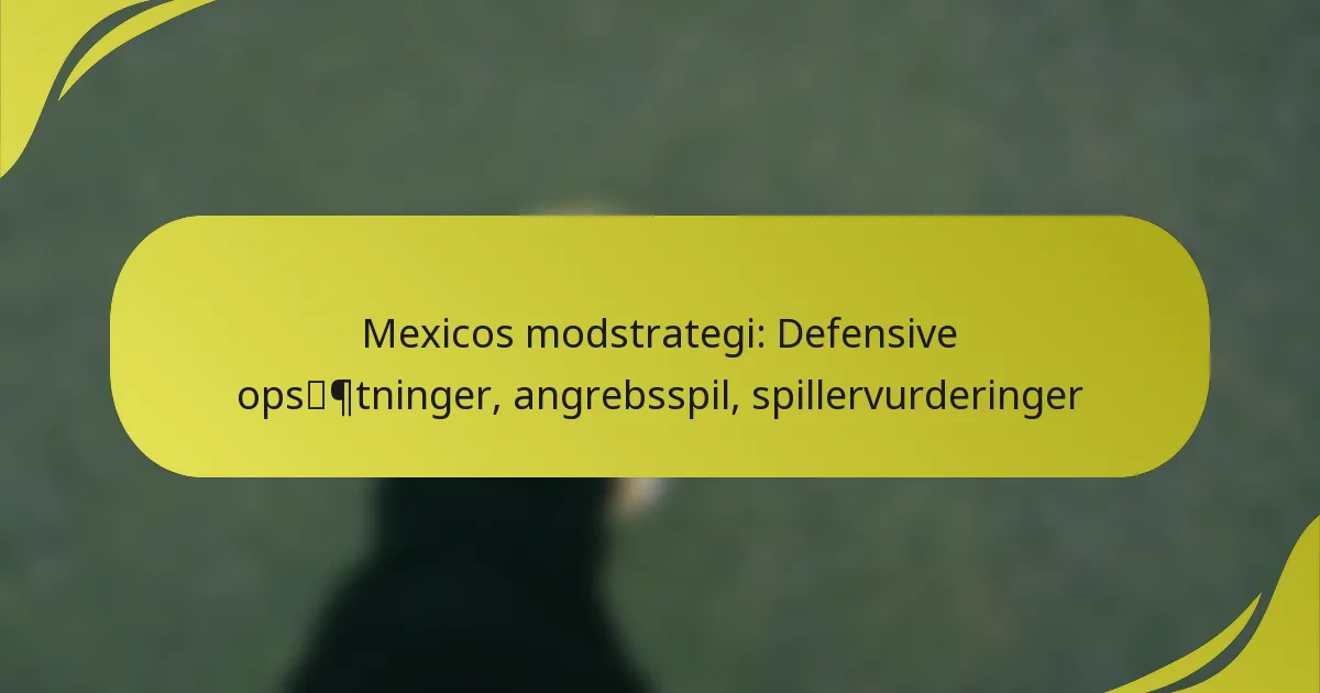 Mexicos defensive opstillinger i fodbold involverer typisk en kombination af formationer og spillerpositionering, der har til formål at minimere modstandernes scoringsmuligheder. Strategierne fokuserer på organiserede defensive linjer, effektiv kommunikation og tilpasningsevne til forskellige angrebsstile.