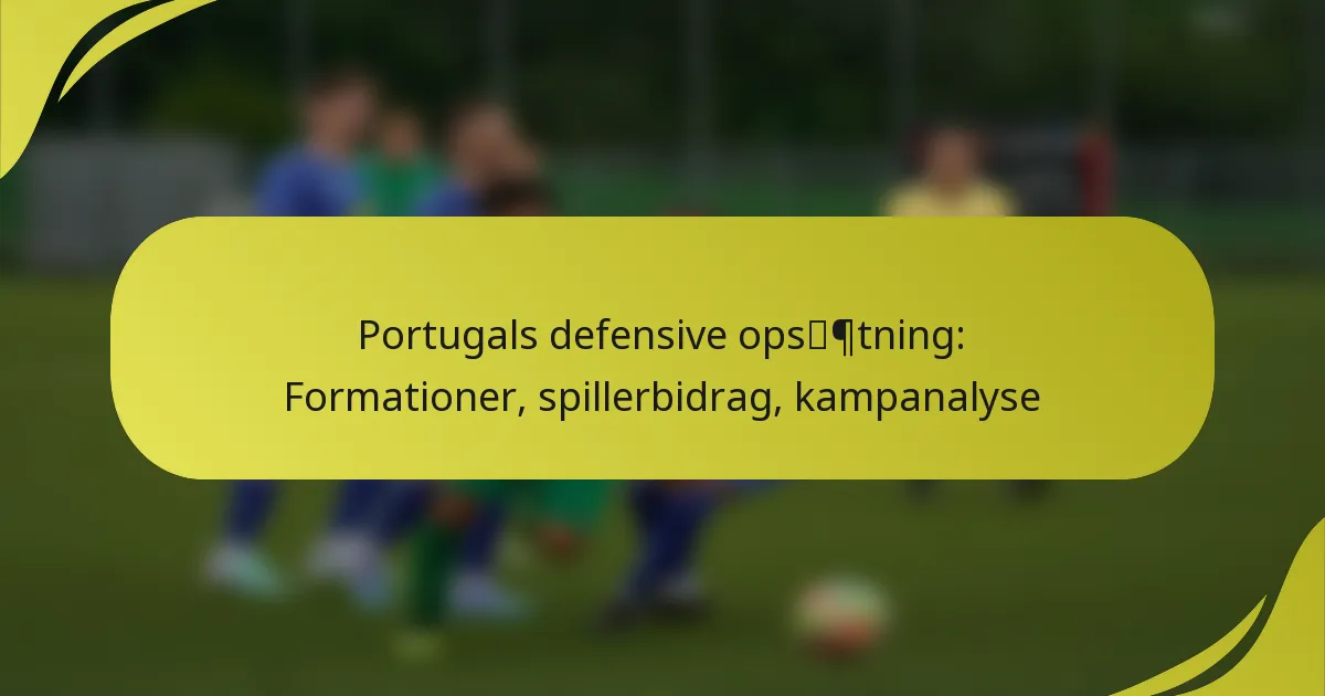 Portugals defensive opsætning er kendetegnet ved en blanding af taktiske formationer, spillerbidrag og tilpasningsstrategier, der forbedrer deres samlede holdpræstation. Vigtige komponenter inkluderer den anvendte formation, spillernes positionering og deres evne til at tilpasse sig forskellige modstandere under kampene.